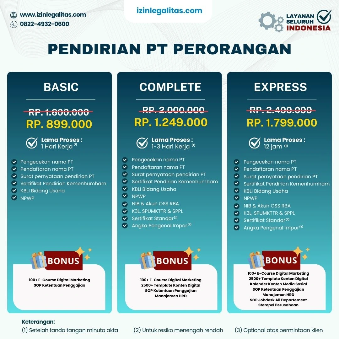 Artikel Terkait: Biaya Pendirian PT Perorangan